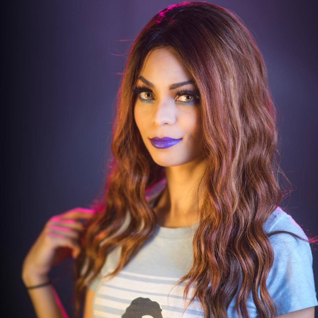 Natural Brown Brunette Color with Silver Blonde Highlights Wavy Lace Wig Melina