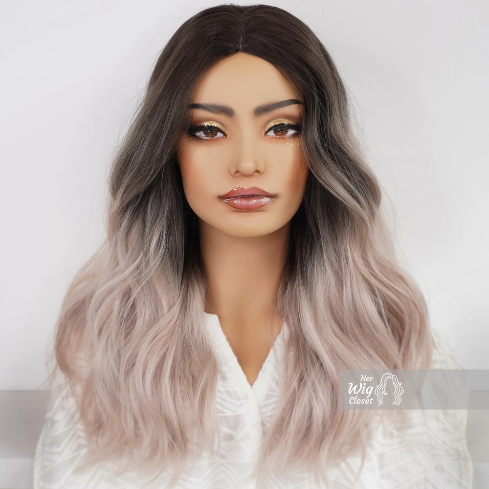 Texture: Wavy Color: Dark root with ashy Silver ombre with Pink undertone Material: Heat resistant synthetic fiber Length: 20 inches Cap Size: Contains adjustable strap perfect for all sizes Density: 150% Cap Construction: Breathable cap with open weft