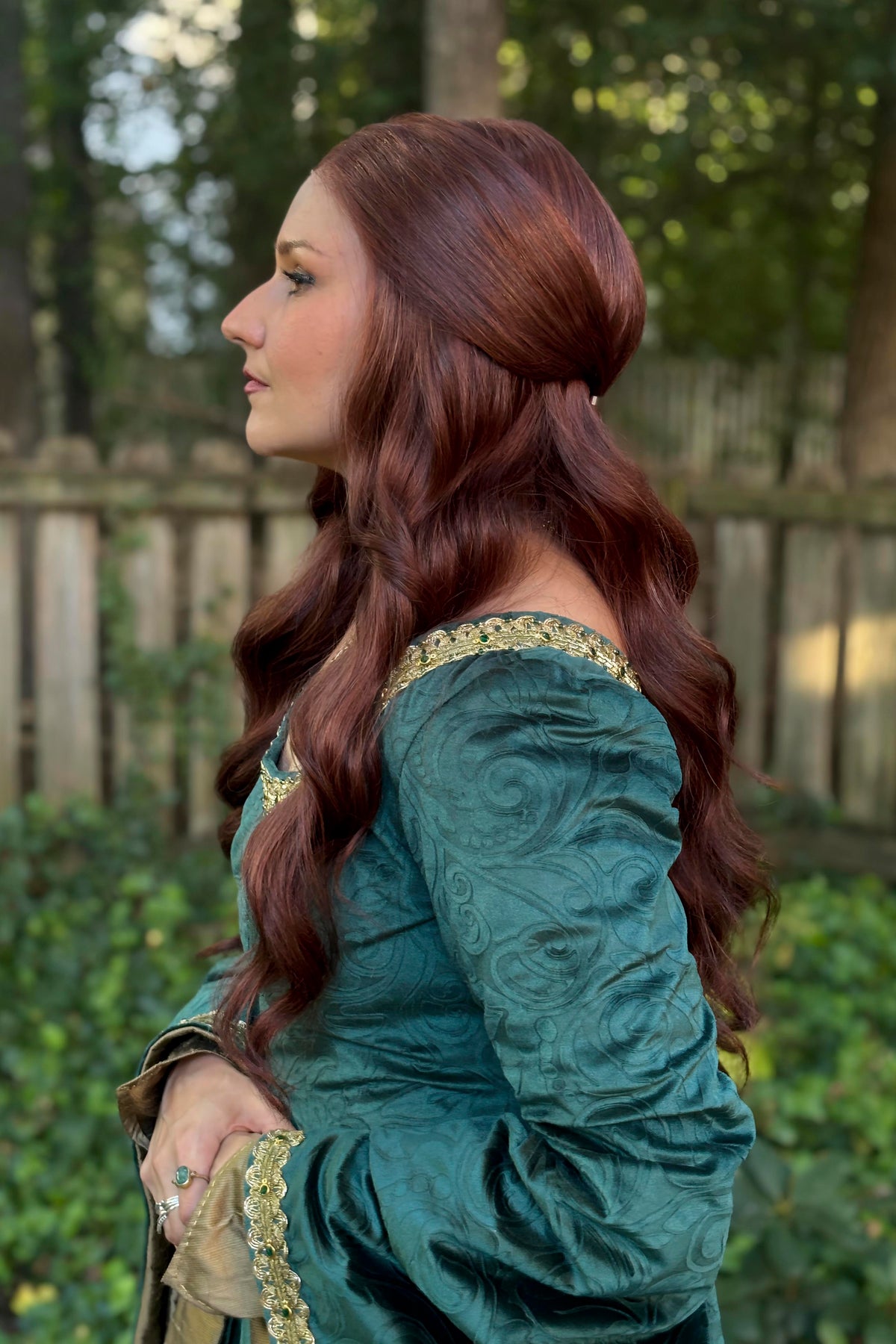 Bring the elegance and strength of Queen Alicent Hightower to life with this stunning 26-inch auburn lace front wig. Inspired by the hit series House of the Dragon, this reddish-brown wavy wig captures her signature look—perfect for cosplay, Halloween, themed photoshoots, or everyday fantasy-inspired glam.
