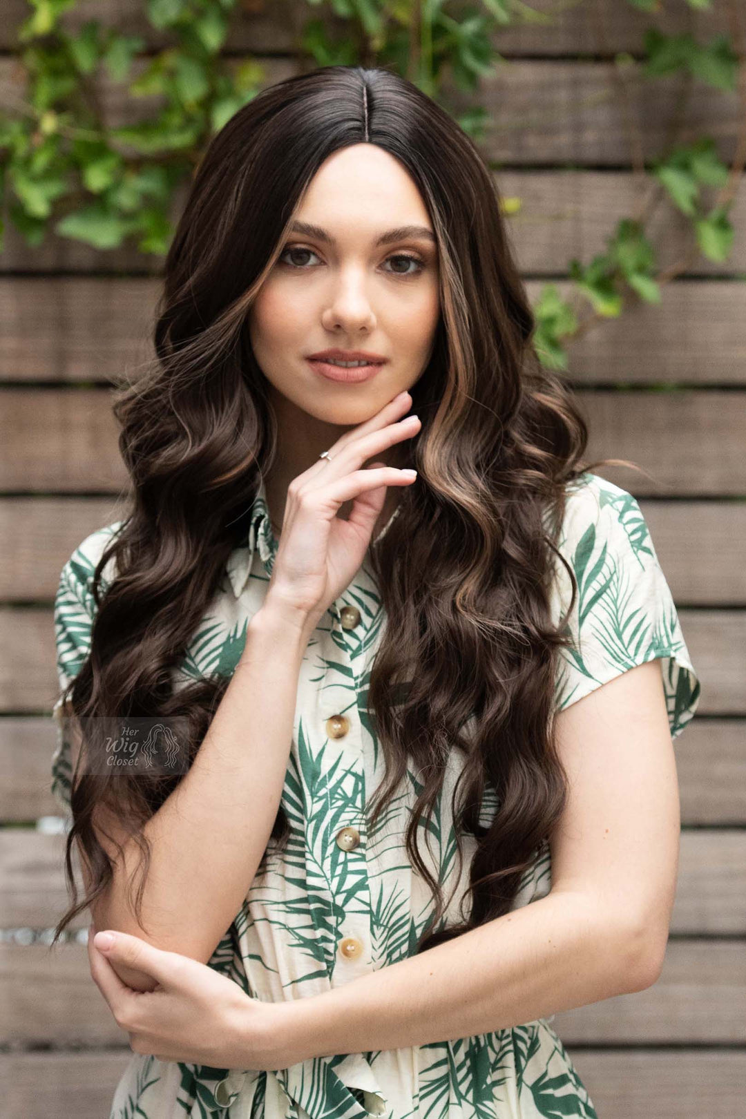 Chestnut Brown Wavy Synthetic Wig with Bangs Sadie