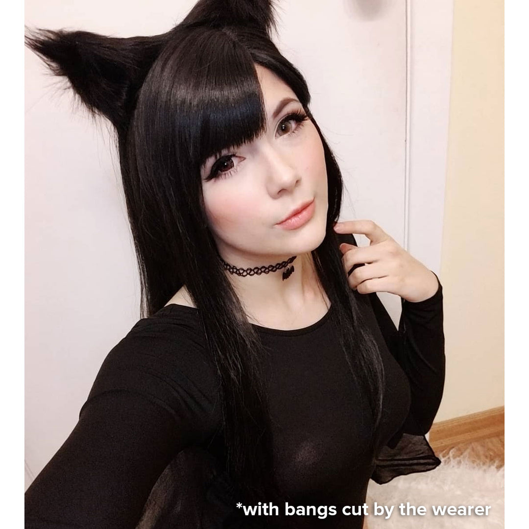 Jet Black Straight Synthetic Wig with Curtain Bangs Catherine