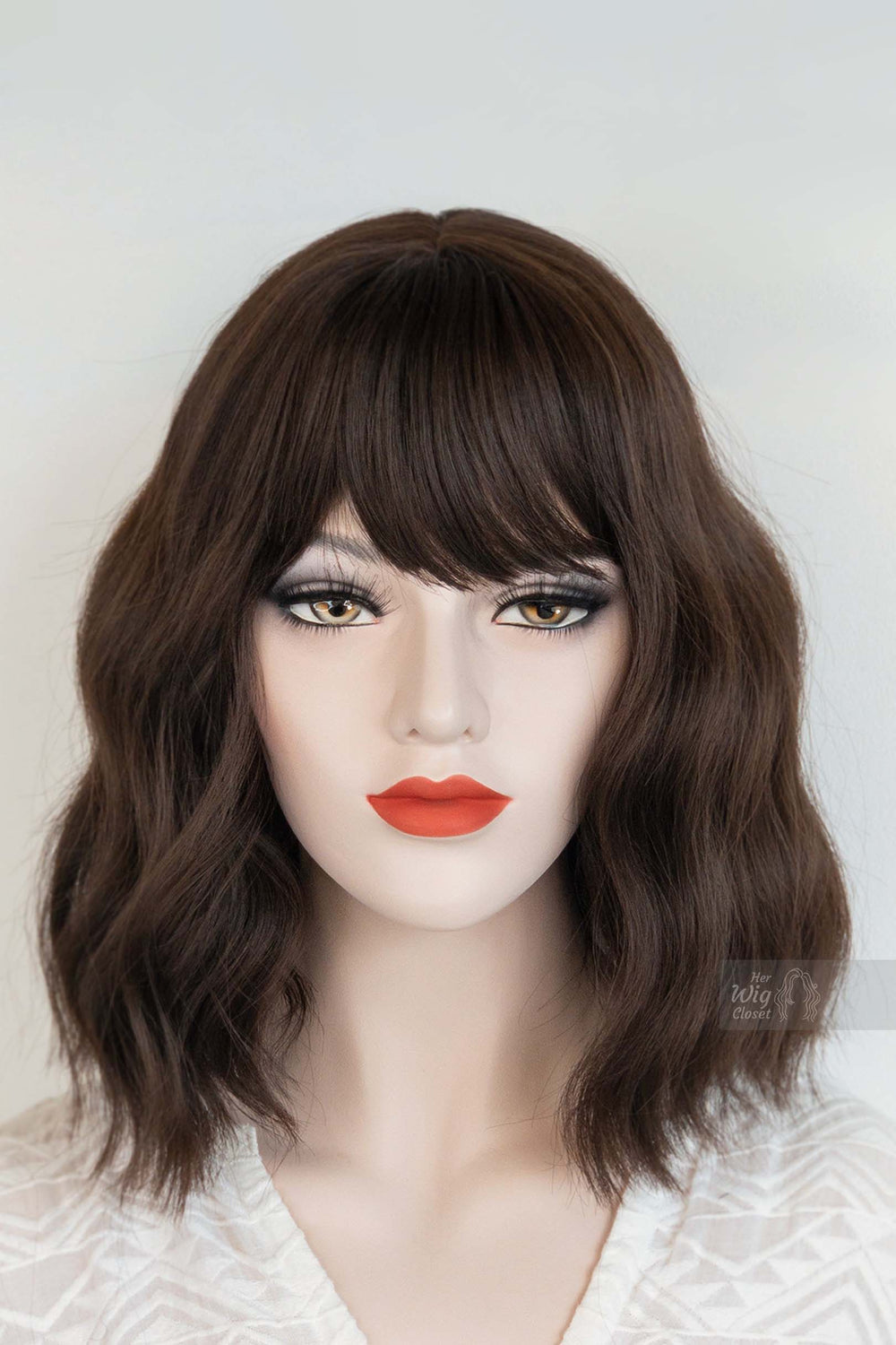 Brunette Wavy Synthetic Bob Wig with Bangs Mila